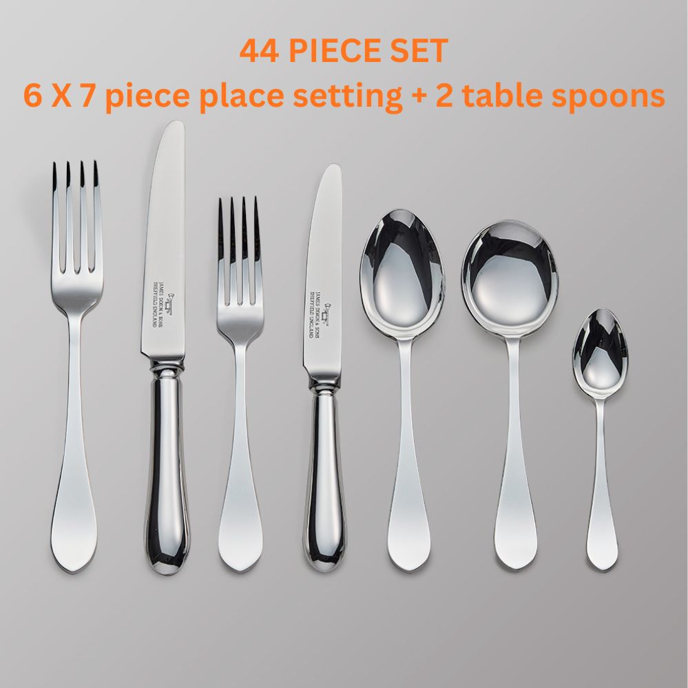 - 44 Piece Set (6 x 7 piece place setting + 2 table spoons)
